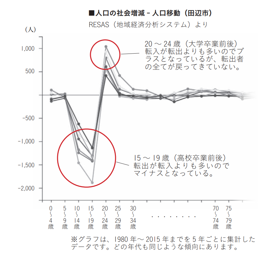 田辺市の高校生などは、多く進学や就職で田辺市を離れることがわかっています。